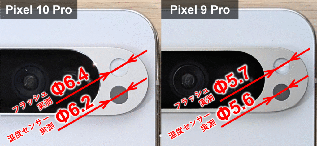 Pixel 10 Proはフラッシュと温度センサーも大きいです。