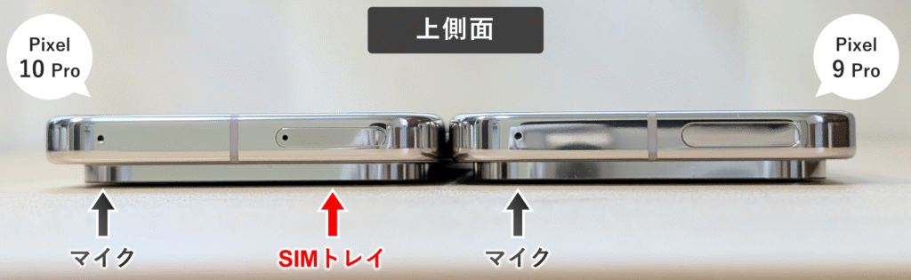 Pixel 10 ProはSIMトレイの位置が変更され、下側面から上側面になりました。