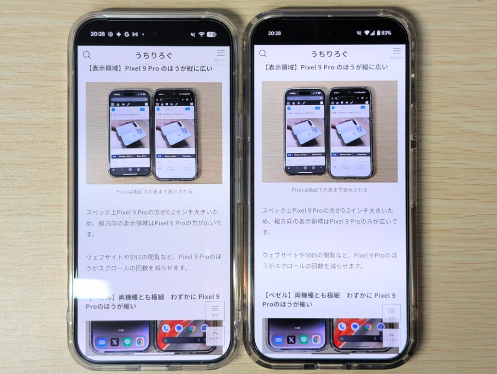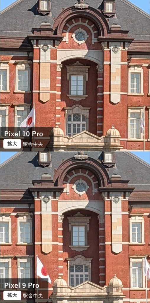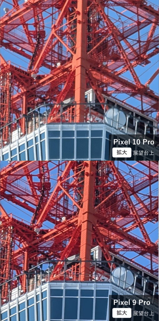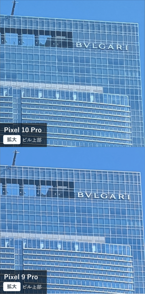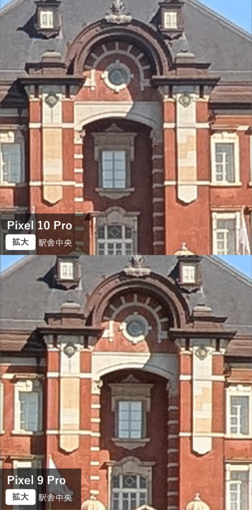 実機で検証した結果、Pixel 10 Proは明るさが少し上がり、9 Proよりわずかにきれいに感じました。