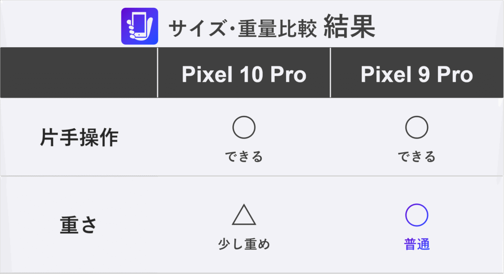 実機比較結果│Pixel 10 Proは少し重く感じる