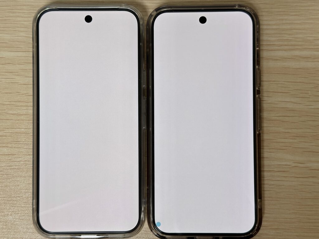 ※画面に透明保護ガラス(両機種同じ製品)を貼付済。