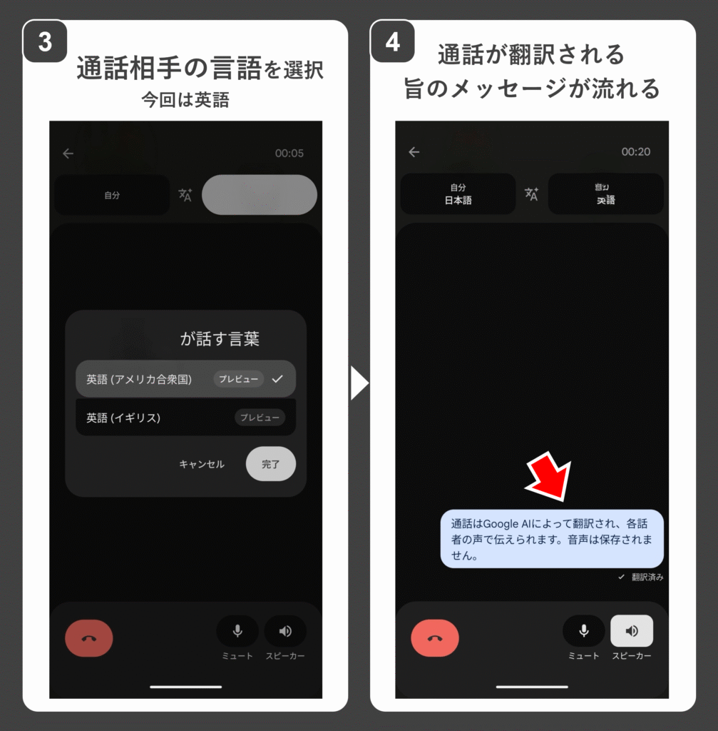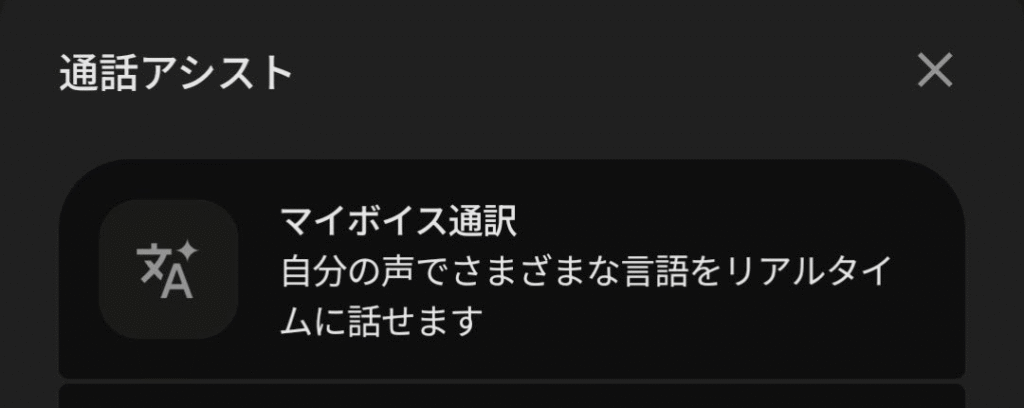 「マイボイス通訳」は、通話中の会話をリアルタイムで翻訳し、それを自分の声で相手に伝えてくれる機能です。