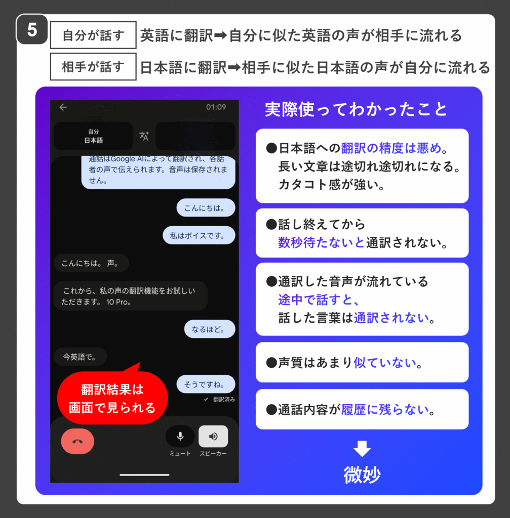 ■新機能② 通話を翻訳し、本人の声で再現する「マイボイス通訳」