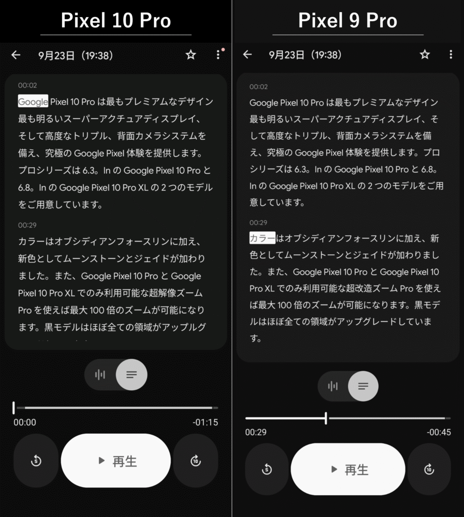 結果は両機種ほぼ一緒。文字起こしの精度は特に進化していないようです。