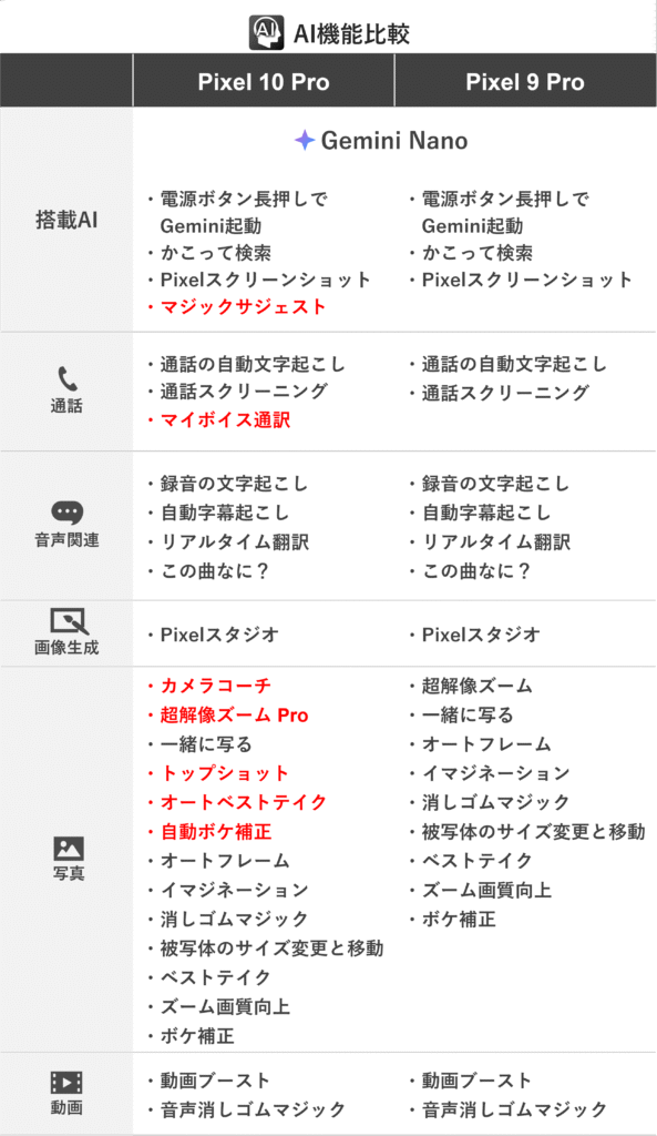 Pixel 10 ProとPixel 9 ProのAI機能を比較レビューします。