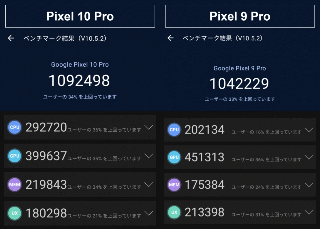 では実際に実機で比較したとき、Pixel 10 Proの進化を感じられるのでしょうか?