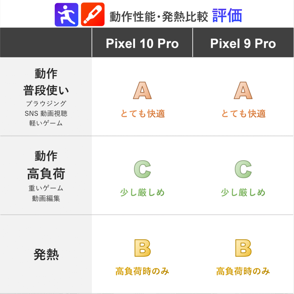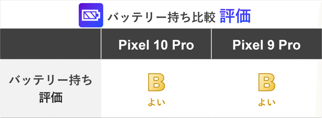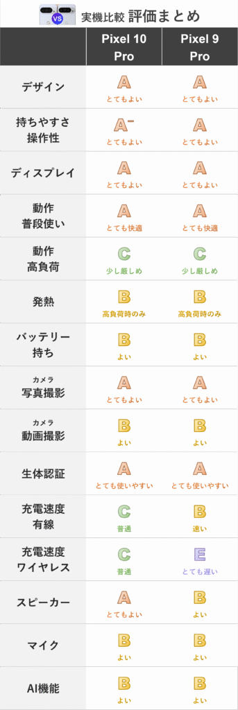 そのためPixel 10 Proは「A⁻」、Pixel 9 Proは「A」評価になりました。
