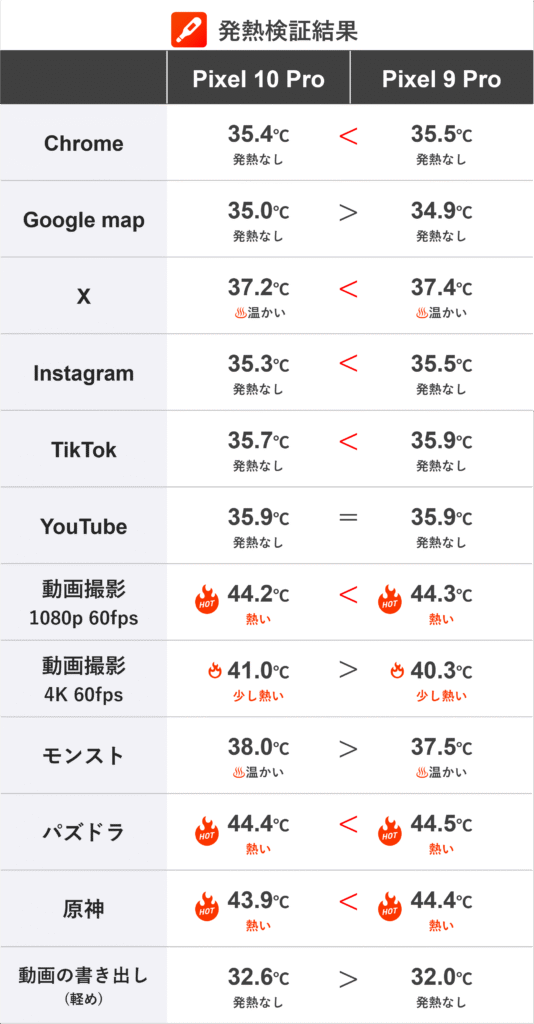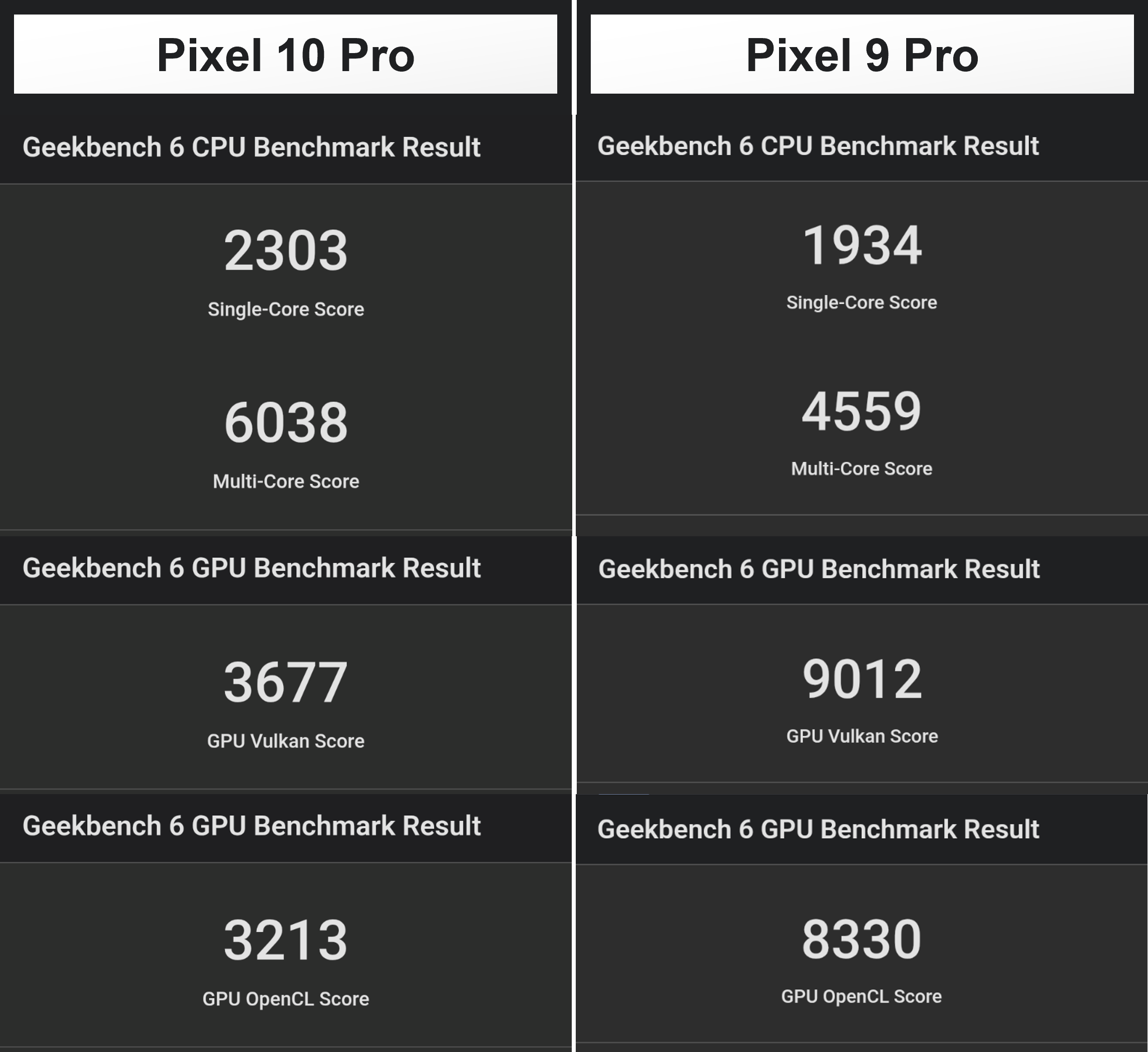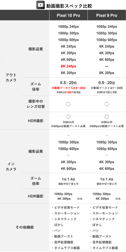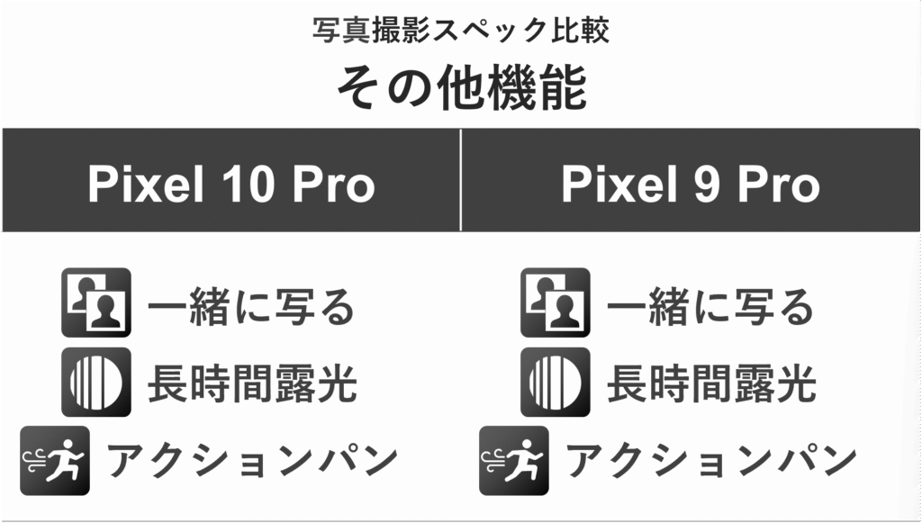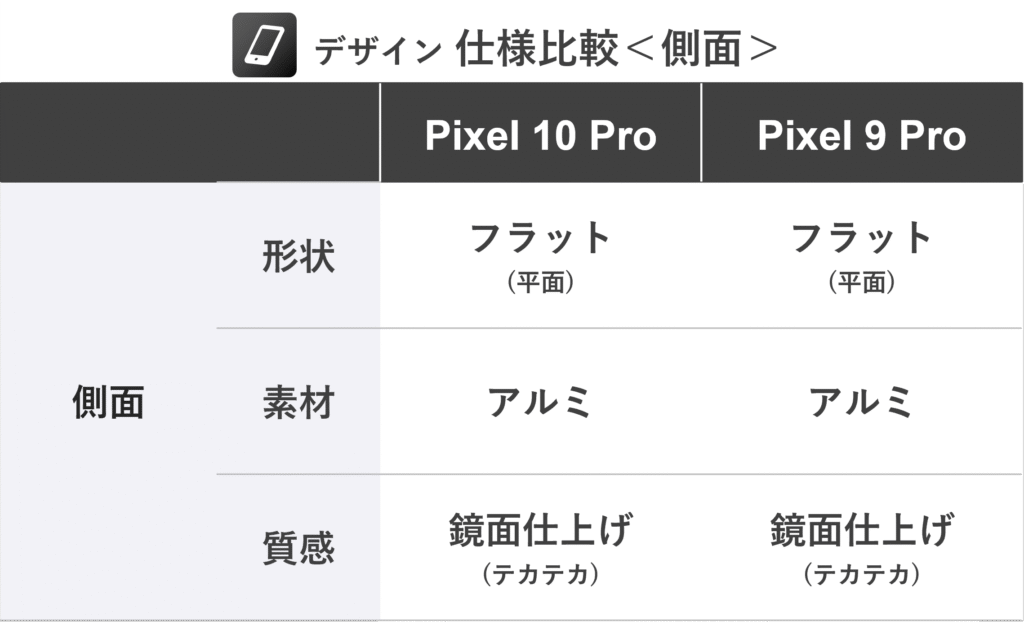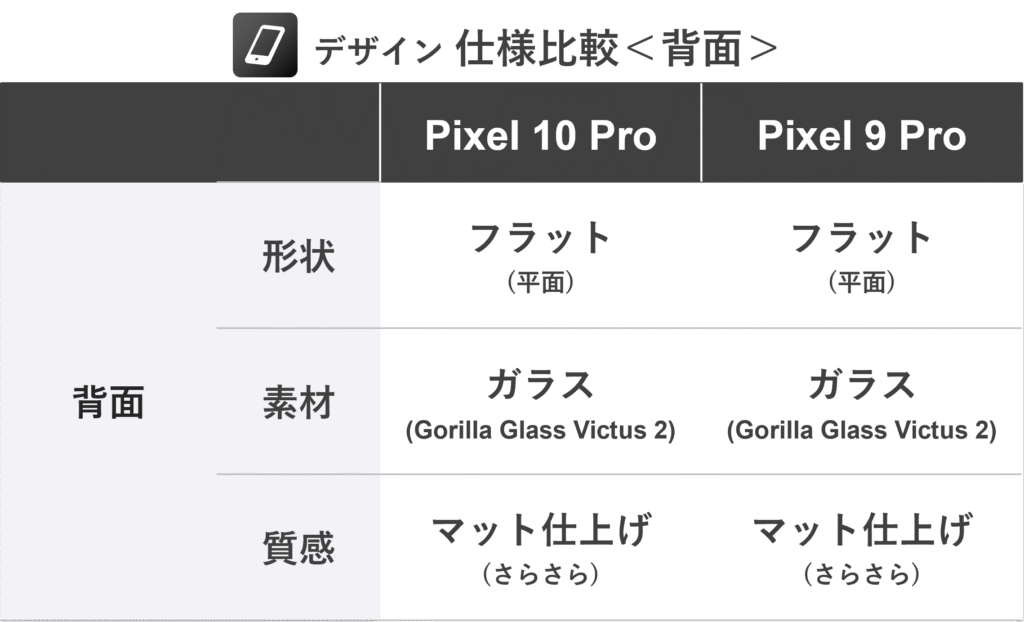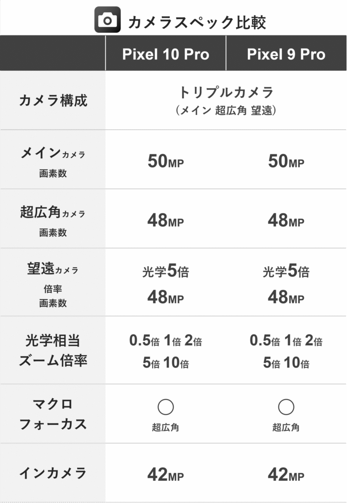 - Pixel 10 ProとPixel 9 Proはほぼ一緒。