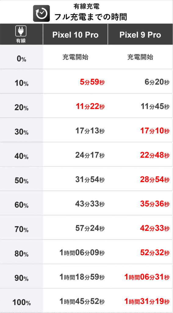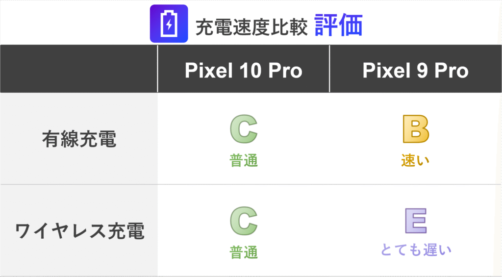 結論として、Pixel 10 ProはPixel 9 Proから大きく進化した点は少なく、明確な進化は「ワイヤレス充電の速度」と「スピーカー音質」の2点だけです。