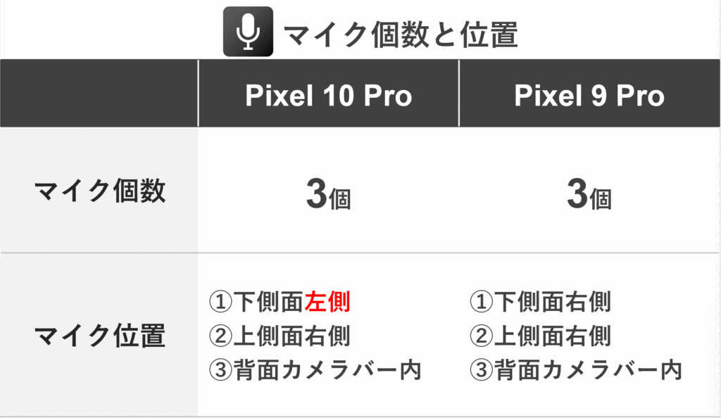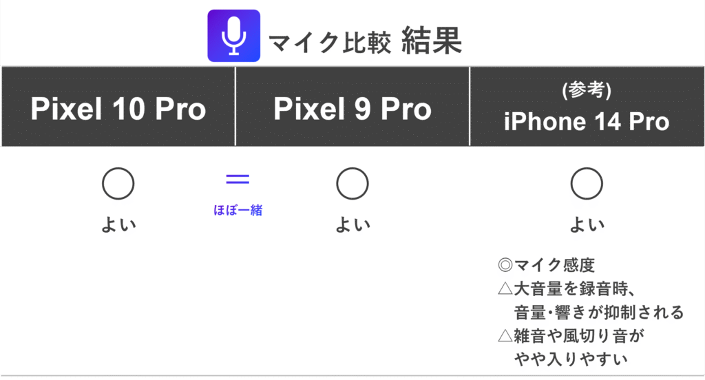 結論としてPixel 10 ProとPixel 9 Proのマイクの違いはわかりませんでした。
