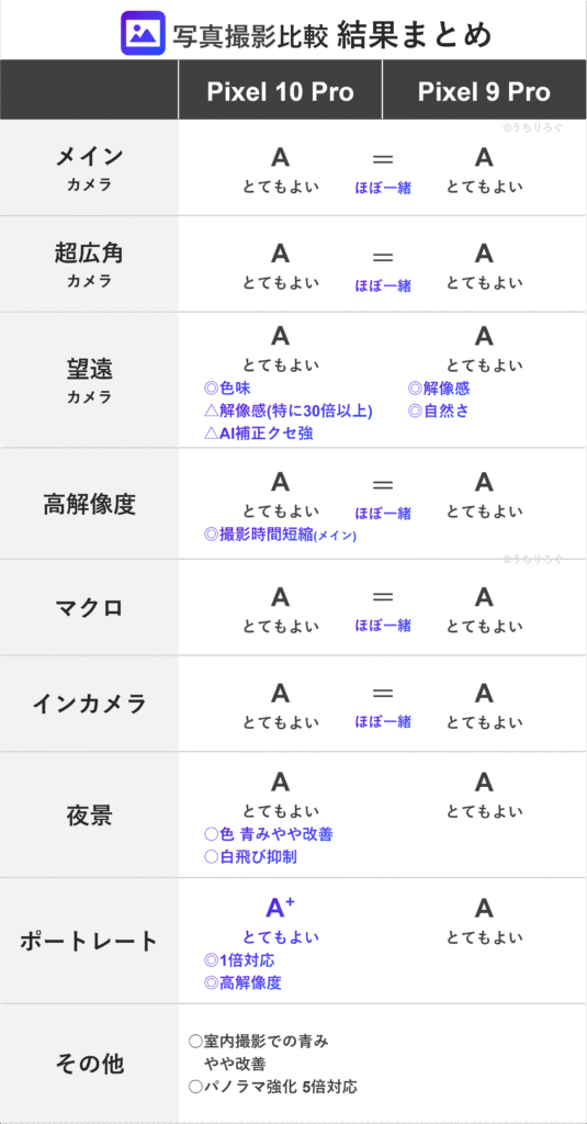 【まとめ 総合評価】Pixel 10 Proの大きな進化点は少なく、評価は互角