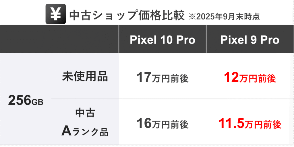 中古価格比較│Pixel 9 Proのほうが5万円程度安い