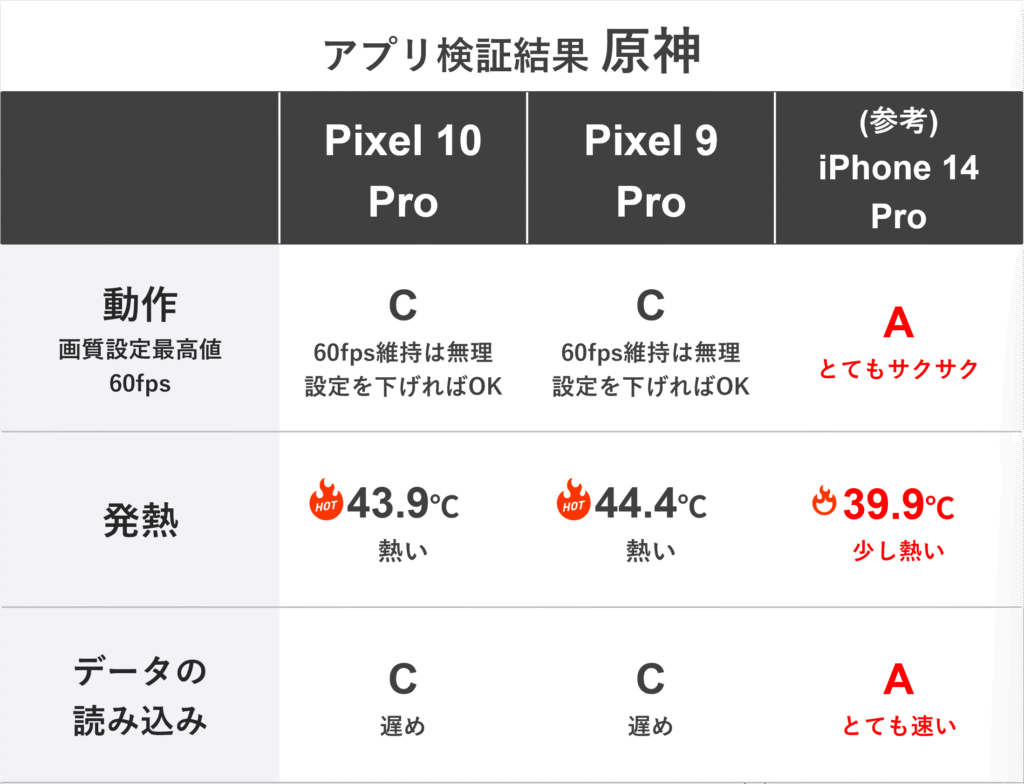 - Pixel 10 Proは相変わらず重い3Dゲームは厳しめ。